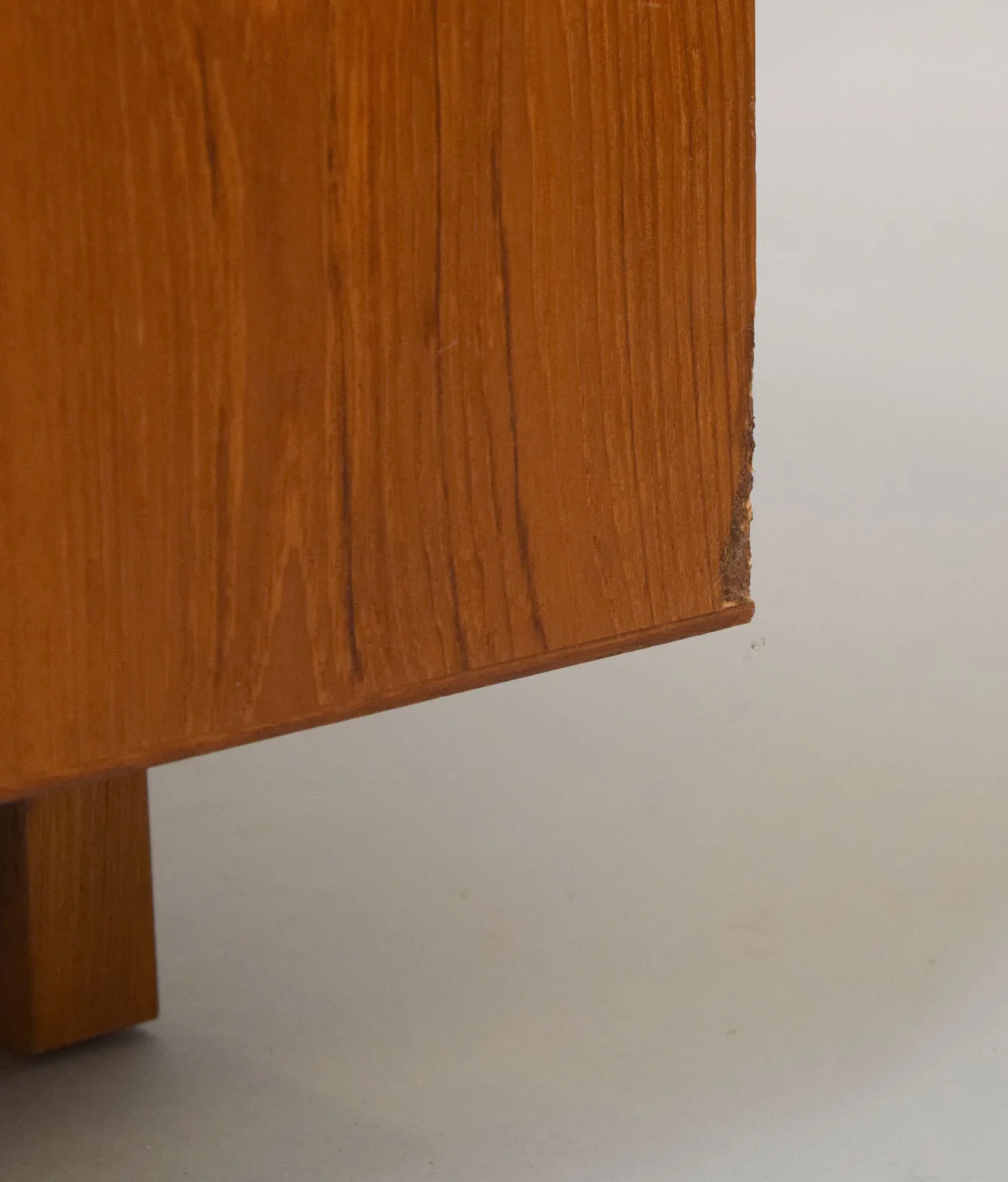 Good used vintage condition with the following to note: some scratches and light discoloration on top. Top right has an area of old water damage that raised the veneer a bit; this can be felt more than seen. One drawer has interior stains and several drawers bind a bit but are still totally usable.
